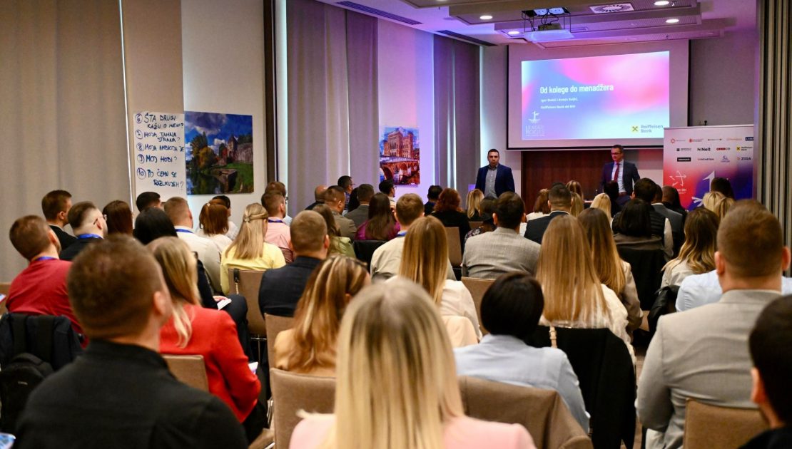 U okviru četvrte generacije Leader Roots programa održana je prva sesija u saradnji sa Raiffeisen bankom, koja je tradicionalno i ove godine otvorila ciklus predavanja i radionica. Učesnici su imali priliku da se upoznaju sa temom „Od kolege do menadžera“, a predavanje su održali Igor Đukić i Armin Suljić, koji su sa polaznicima podijelili svoja iskustva i praktične savjete iz menadžerske prakse.